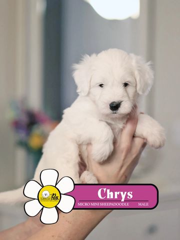 Chrys is a male F1b MICRO MINI Sheepadoodle from Miss Luna & Mr Mick, born December 15, 2025.