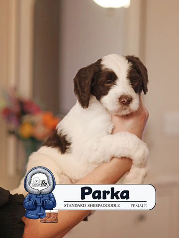 Parka is a female F1b Standard Sheepadoodle from Miss Layla Belle & Mr Piers, born December 12, 2025.
