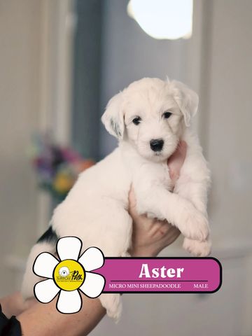 Aster is a male F1b MICRO MINI Sheepadoodle from Miss Luna & Mr Mick, born December 15, 2025.